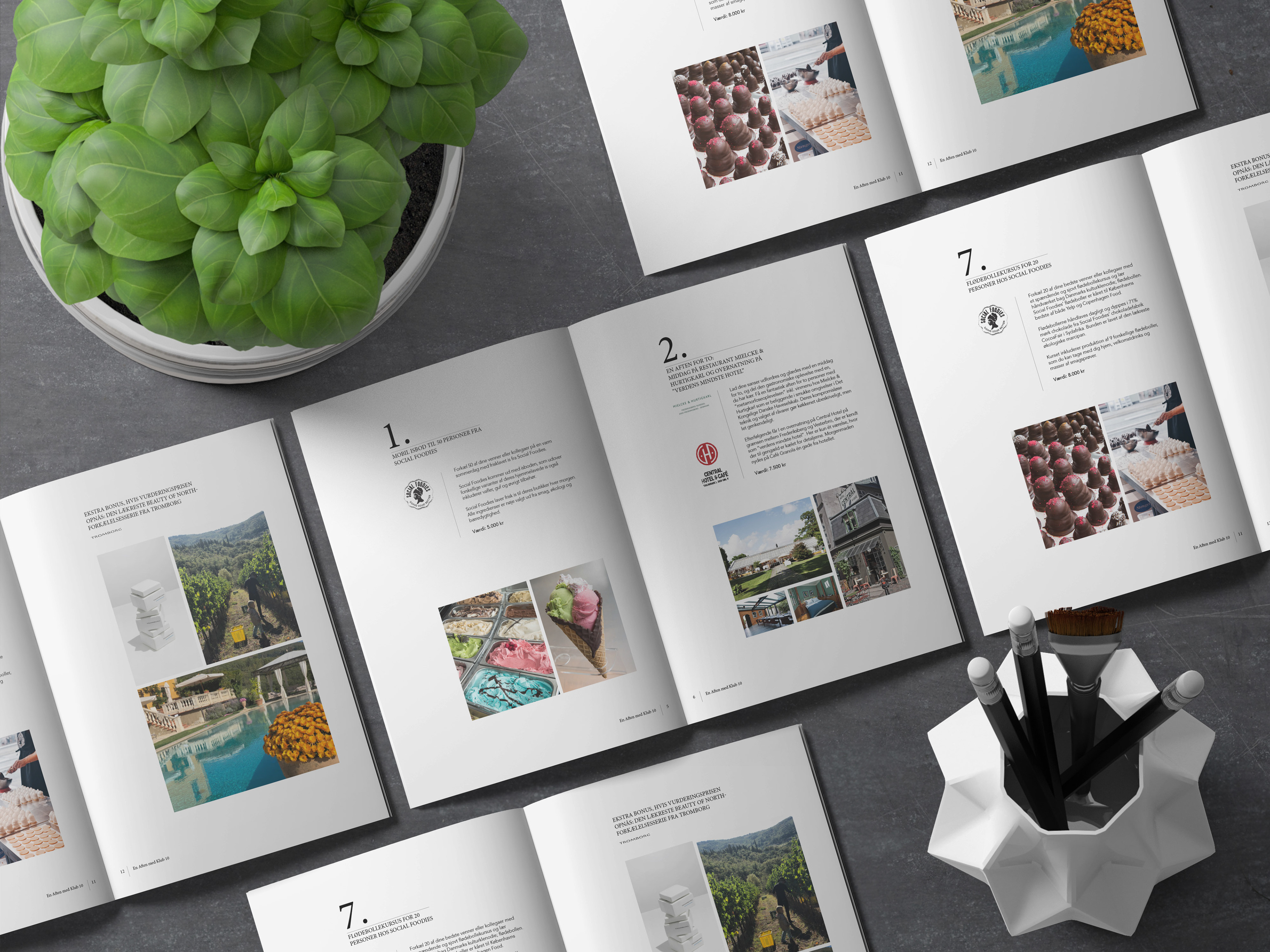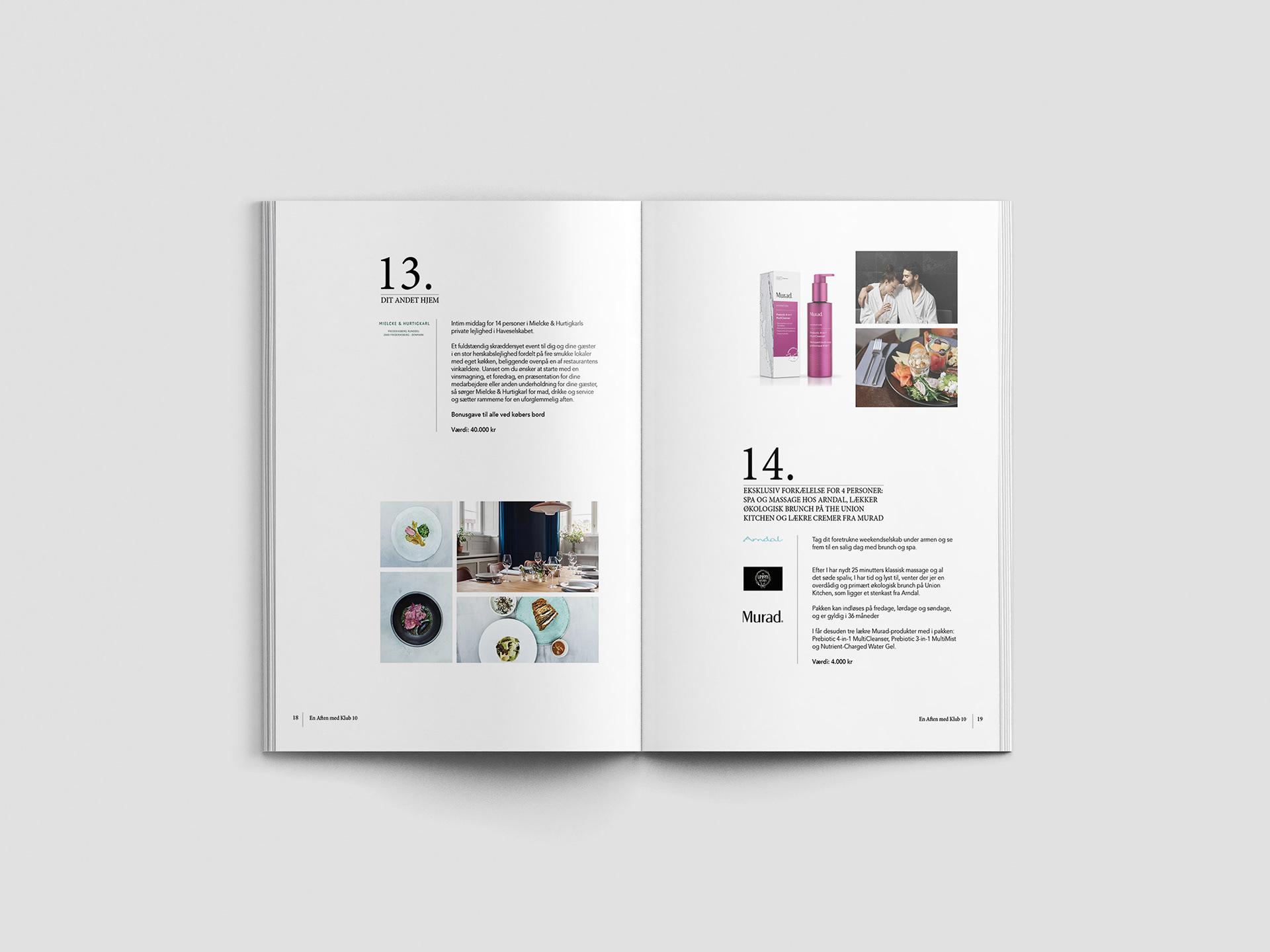 I designed this brochure for a Red Cross Klub 10 event in Copenhagen. It showcases all the donations that would be bid on.